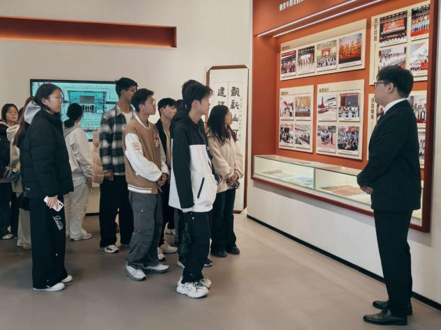 活动伊始,新生们怀着憧憬与好奇走进校史馆。在讲解员的细致讲解中,新生们仿佛置身于学校的发展历程里——从建校初期的艰难探索,到如今在教学、科研领域的蓬勃发展,每一个关键节点都令人心潮澎湃。尤其在材料科学与工程学院专属成果展示区,近年来学院在关键技术科研攻关、学科内涵建设上取得的一系列亮眼成绩格外醒目,直观展现了学院的学科实力与发展活力。这不仅让新生们深受鼓舞,更进一步坚定了未来潜心投身专业学习、主动助力学院高质量发展的决心。
