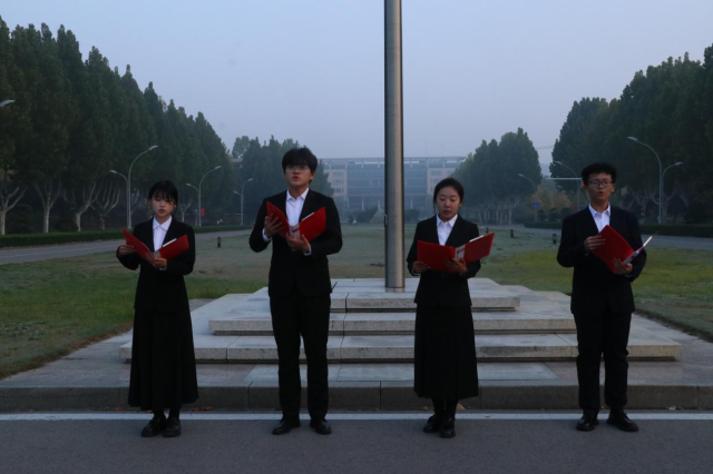 2025年10月27日,聊城大学材料科学与工程学院于聊城大学东校区南门广场举办“以奋斗致敬历史,用担当开创未来”国旗下话成长教育活动,学院团委书记、辅导员及2025级全体新生280余人参加活动。