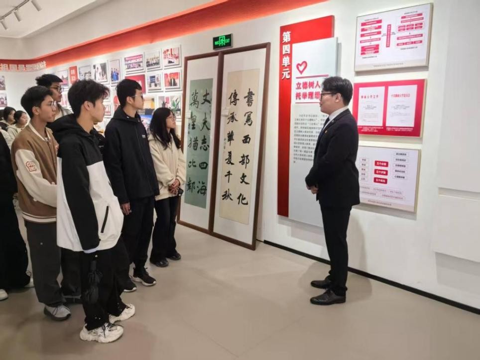 (三)利用学校德育资源,发挥校史育人功能,筑牢学生“学在聊大、奠基人生”的思想根基。2025年10月,学院集中组织2025级全体新生赴校史馆、西部计划教育展馆开展参观学习活动,帮助学生在回顾学校发展历程与感悟志愿服务精神的过程中,激发荣校爱校情怀,深刻体悟“聊大力量”。