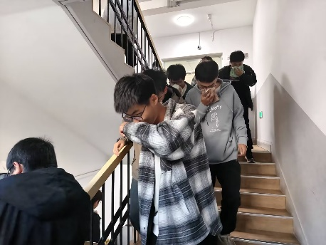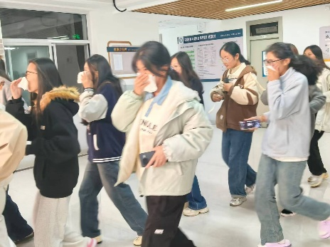 当日下午两点,警哨声骤然响起,学生们迅速作出反应,在学生干部的引导下,严格遵循宿舍消防安全应急预案流程,用湿毛巾捂住口鼻,沿预设疏散路线快速向公寓外指定安全区域撤离。仅用时2分32秒,学院两栋公寓学生全部安全疏散至集合点,整个过程高效、有序,未出现任何意外情况。
