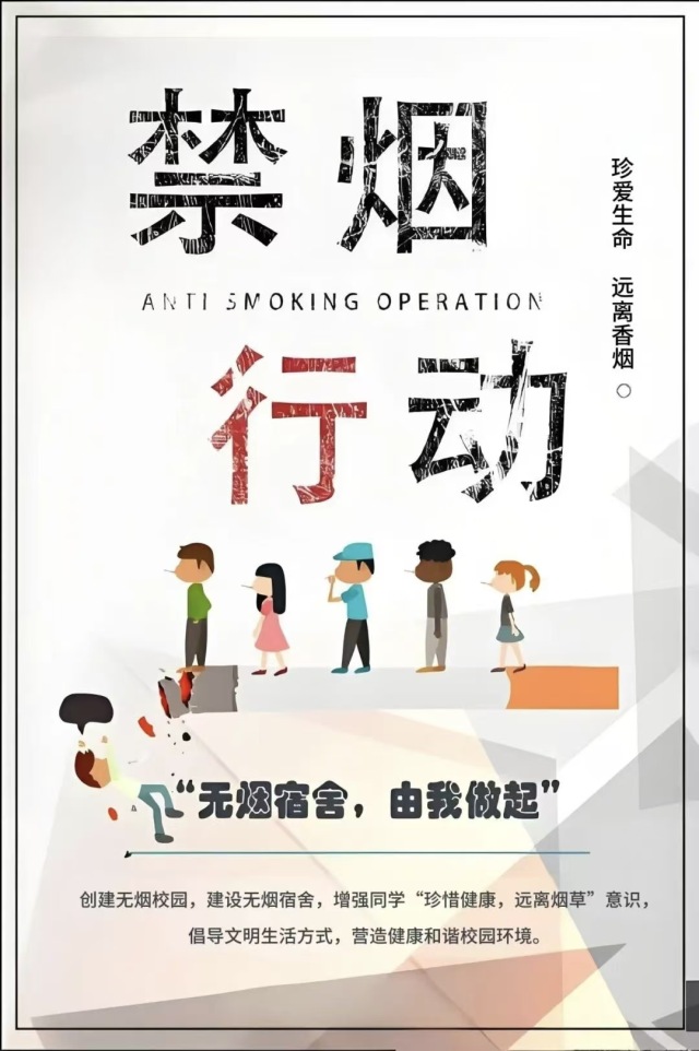 为构建常态化监督机制,学院组建了由宿舍长、禁烟监督员、巡检员及宿舍服务中心干事共同参与的“禁烟检查小分队”,实施网格化管理。该队伍负责日常巡查与督导工作,对发现的吸烟行为做到及时发现、立即劝阻、现场教育,实现监督全覆盖、管理无盲区。同时,学院依托专题班会、宣传展板、条幅、微信公众号等线上线下平台,广泛宣传吸烟危害与消防安全知识,营造全员参与、共建共享的无烟校园氛围,促进学生形成健康行为习惯,提升自我防护能力。