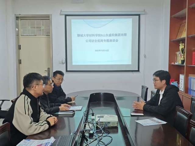 为深入贯彻落实高校毕业生就业工作的决策部署,深化产教融合、校企合作,2025年10月16日,聊城大学材料科学与工程学院与山东盛阳集团有限公司于东校区4#A121党员活动室联合开展访企拓岗专题座谈会。学院党委副书记郑永朝,团委书记齐亚伟,辅导员陆含,以及山东盛阳集团有限公司人力资源部招聘经理张智强出席本次会议。